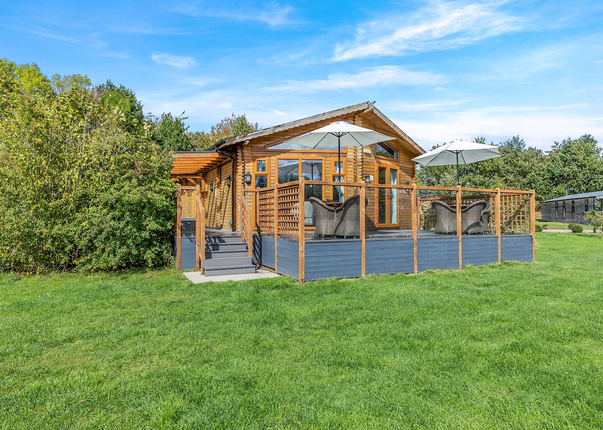 見事にデザインされた現代的なロッジで、ドレッシングルームとオーバーヘッドシャワー付きの専用バスルームを備えたダブルベッド1台、専用ウェットルームを備えたツインベッド1台があり、どちらにも薄型テレビが備わっています。