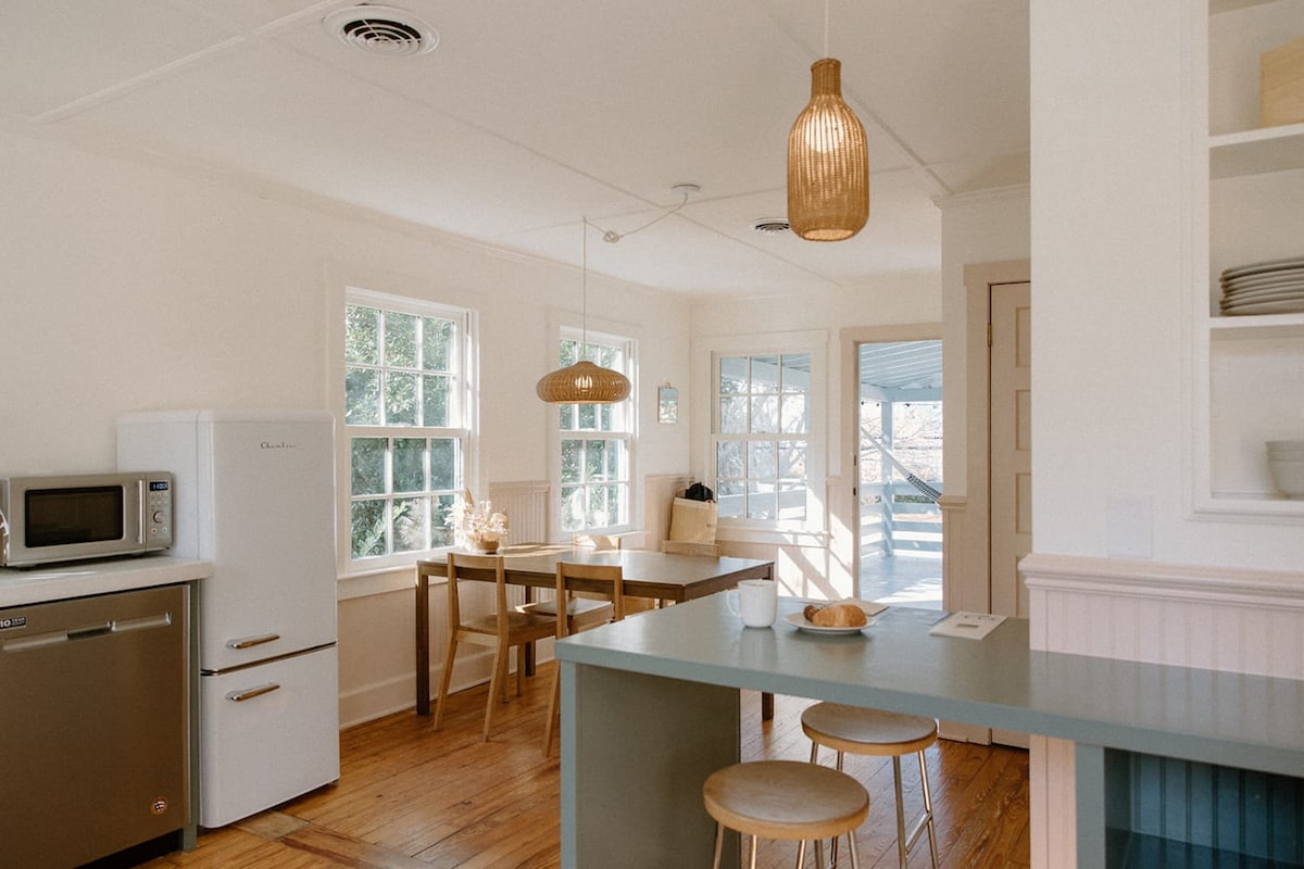 The Bungalow Loftは、1946年建築のクラシックな二世帯住宅の外観を残しつつ、内部をモダンな海辺のリゾート風にリニューアルし、時代を超えた魅力と現代的な快適さを兼ね備えた宿泊施設です。 考え抜かれたデザインのこの空間には、寝室1部屋、リビングエリアに追加のデイベッド2台、フルバスルーム、設備の整ったキッチン、居心地の良いダイニングスペースがあります。外に出ると、広々とした屋外リビングがあり、玄関ポーチ、広々としたデッキ、焚き火台、爽やかな屋外シャワーを楽しめます。