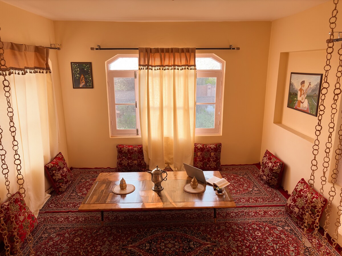 Gulistan House, a one of its kind villa in Tangmarg, just 30 minutes from Gulmarg Gondola. Named after "garden of flowers,” this elegant and charming home is a poetic escape into nature’s beauty. Wake up to magical views from plush bedrooms with gas Bukhari’s and Kashmiri inspired interiors. Stroll through the sprawling garden, enjoy morning chai on the balcony or gather for evenings by the bonfire and BBQ. Pet friendly and welcoming, this home is made for creating your own book of memories.
