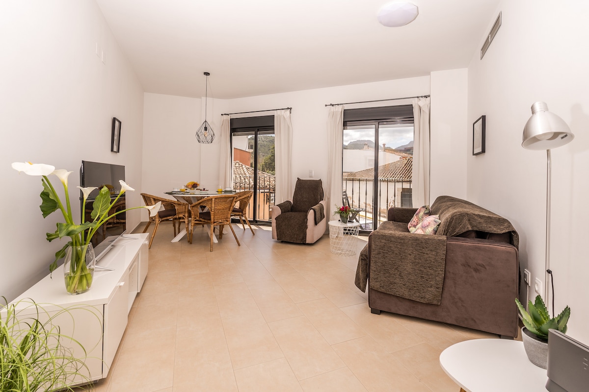 アパートは川の近くのハロン村にあり、スーパーマーケットから徒歩2分です。アパートの隣には公共駐車場があります。 わずか数分のところには、ハロンの素晴らしい料理とワインを楽しめるバーやレストランがたくさんあります。 最寄りのビーチは、車で約15 ~20分のカルペの砂浜です。 村の中心部に位置しているため、ハベアやデニアなどの主要なビーチのほとんどに30分以内で行くことができます。