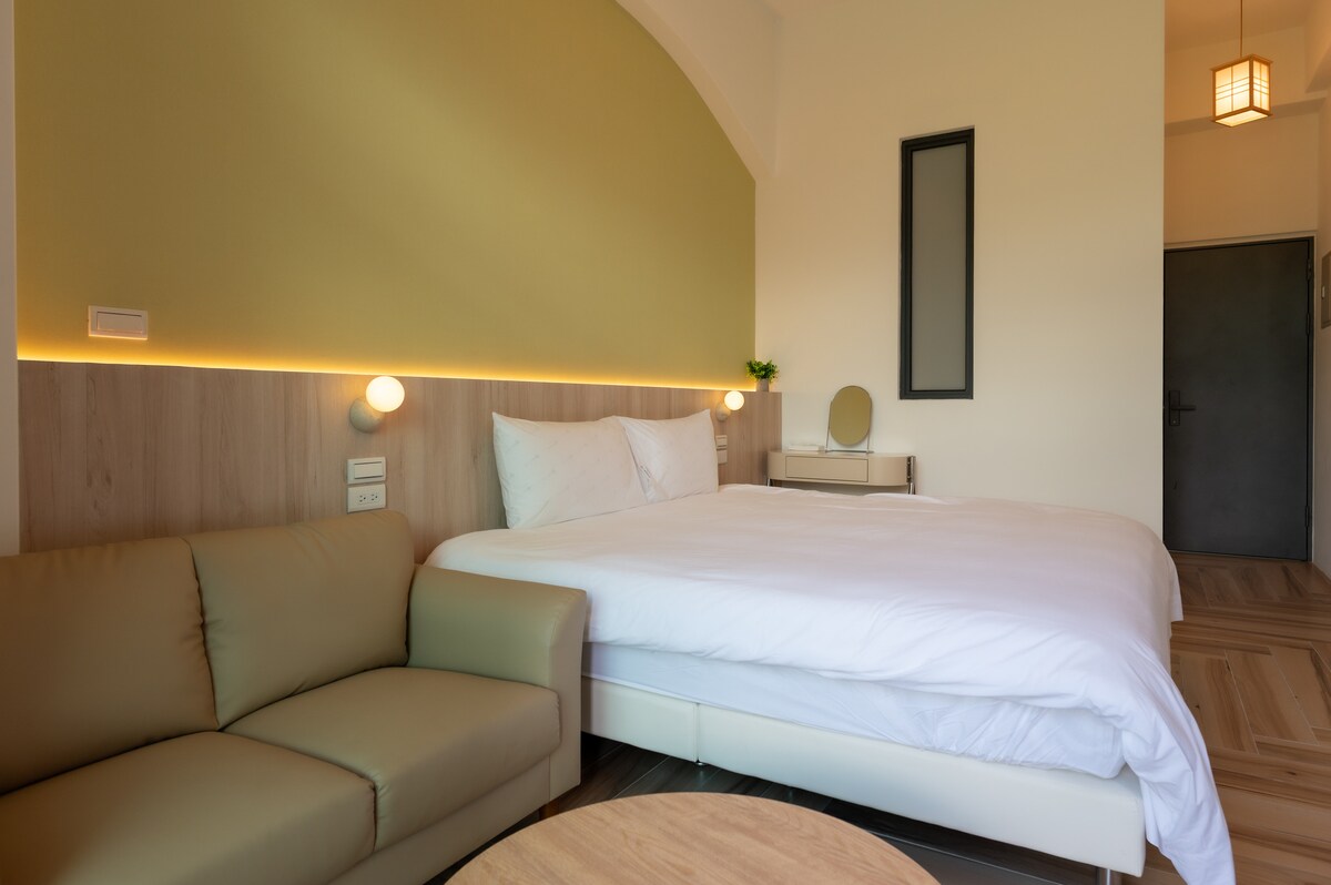 イタリア原産のカララホワイトマーブルは、白と灰色の模様が繋がり、優雅な雰囲気を醸し出しています。灰色、黒色、白色が部屋の基調となっています。部屋には床から天井まで届く大きなガラス窓があり、室内にいながら中央山脈の緑、空の青さ、雲の白さを楽しむことができます。部屋の外で虫の鳴き声や鳥のさえずりを楽しみたい場合は、バルコニーに出て木製の椅子に座り、お茶を飲みながら、心をリラックスさせましょう。カララホワイトのバスルームには、青い真珠の大理石のバスタブがあり、お客様はストレスを解消するためにバスタブに入ることができます。また、バスタブの外の大きな眺望の窓からの美しい景色を見ることができ、すべての悩みを忘れることができます。**室内面積は約8坪で、バスタブ、独立したバルコニー、大きなダブルベッド(6 * 6.2)、ソファ(ソファベッドにすることができます)があります。 設備:冷暖房、冷蔵庫、テレビ、MODチャンネル、無線Wi-Fi、乾湿分離式バスルーム、トトトイレと洗浄便座、ヘアドライヤー、電気ポット