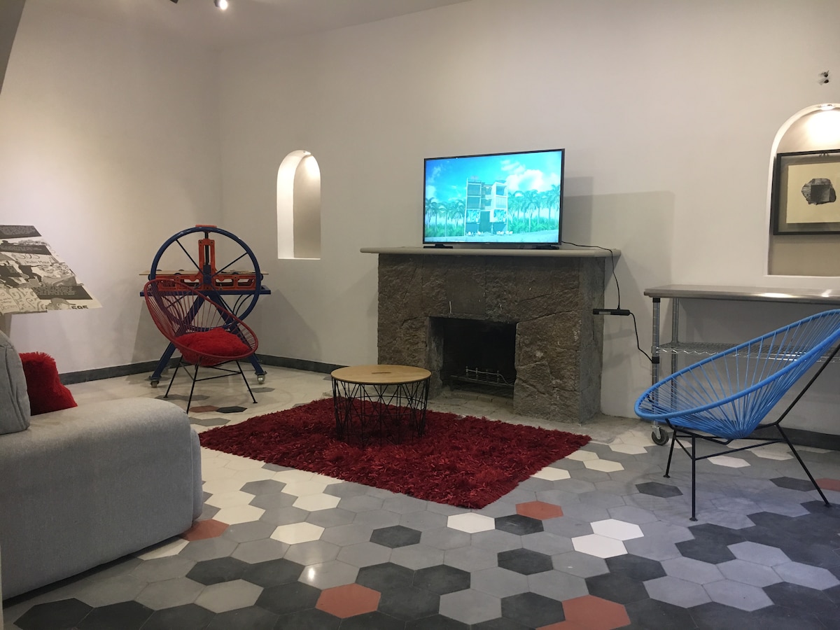 コヨアカンの歴史地区にある、プライベートガーデン付きの美しい2ベッドルームのコロニアル様式の家。博物館、専門カフェ、賑やかな広場、公園からわずか数歩。16世紀の教会、伝統的な市場、ベーカリー、活気あふれるナイトライフに囲まれて、地元の人のように暮らしましょう。歴史、文化、快適さが完璧に融合したペットと泊まれるお家です。