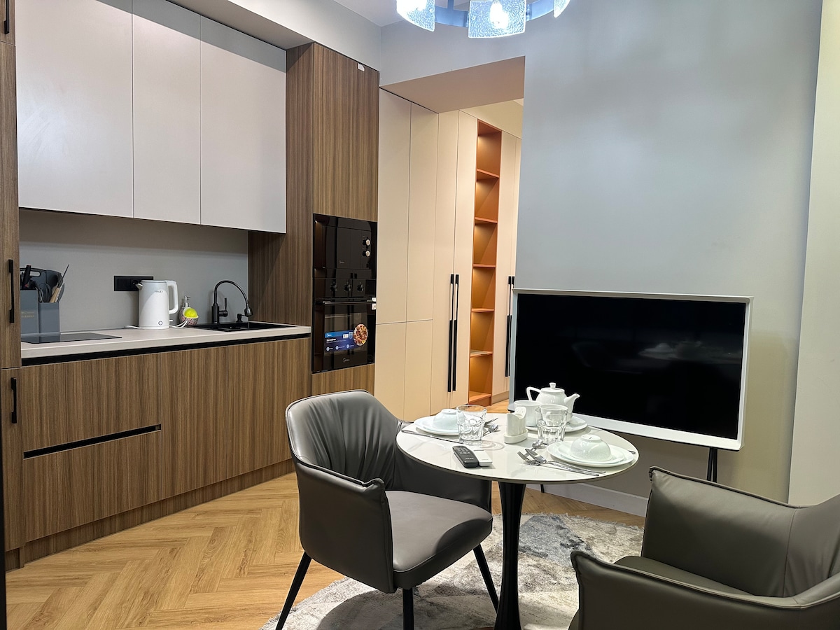 タシケントの中心部にあるプレミアムデザイナーズアパートメントの雰囲気に浸ってください。 ブークレ ソファ、スタイリッシュな家具、大理石のコーヒーテーブルを備えたリビングルームは、5 つ星ホテルのような雰囲気を醸し出します。 アパートには2つのベッドルームがあります。大きなベッドを備えたマスターベッドルームと、2つのシングルベッドを備えた2つ目のベッドルームは、家族、友人、または同僚に最適です。 照明付きのドレッシングルーム、設備の整ったキッチン、ブティックホテルスタイルのバスルーム。 快適さ、美しさ、高いレベルのサービスを重視するお客様に最適です。