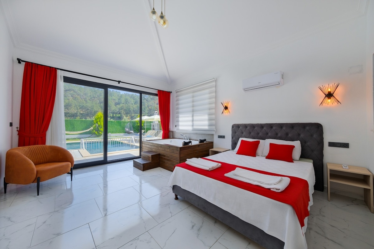 フェティエで自然と一体化した特別な休暇 フェティエの穏やかな雰囲気に位置する1 +1の形状で、2人用のモダンでロマンチックな逃避場所です。温水プール付き。 街の喧騒から離れていながら、あらゆる施設に近い立地のヴィラは、モダンなインテリア、異なるデザイン、専用プールで、一緒にリラックスして楽しいひとときを過ごす準備ができています。 フェティエ市内中心部から10キロ、15〜20分です。