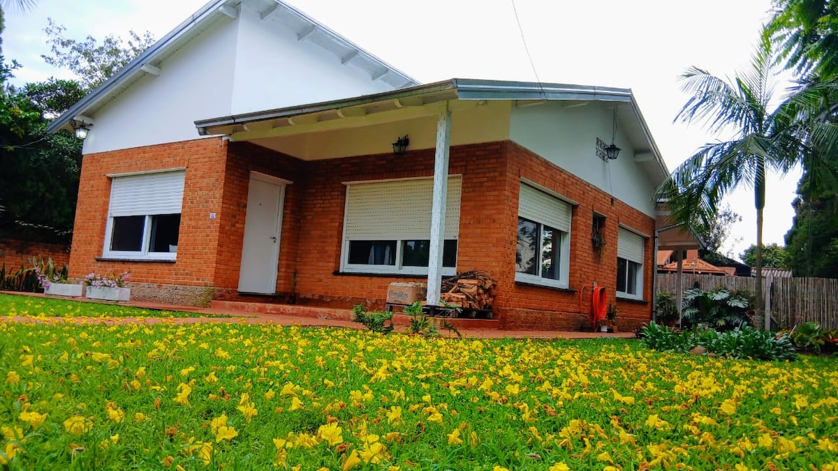 Amplia y cálida casa en medio de un hermoso jardín y parque forestado en zona residencial del centro de la ciudad. A 5 km de la costanera sobre el Rio Paraná, 30 km de la cueva del Yaguarete, la Gruta India, los Saltos del Tabay y 170 km de las Cataratas del Iguazu y Saltos del Mocona.