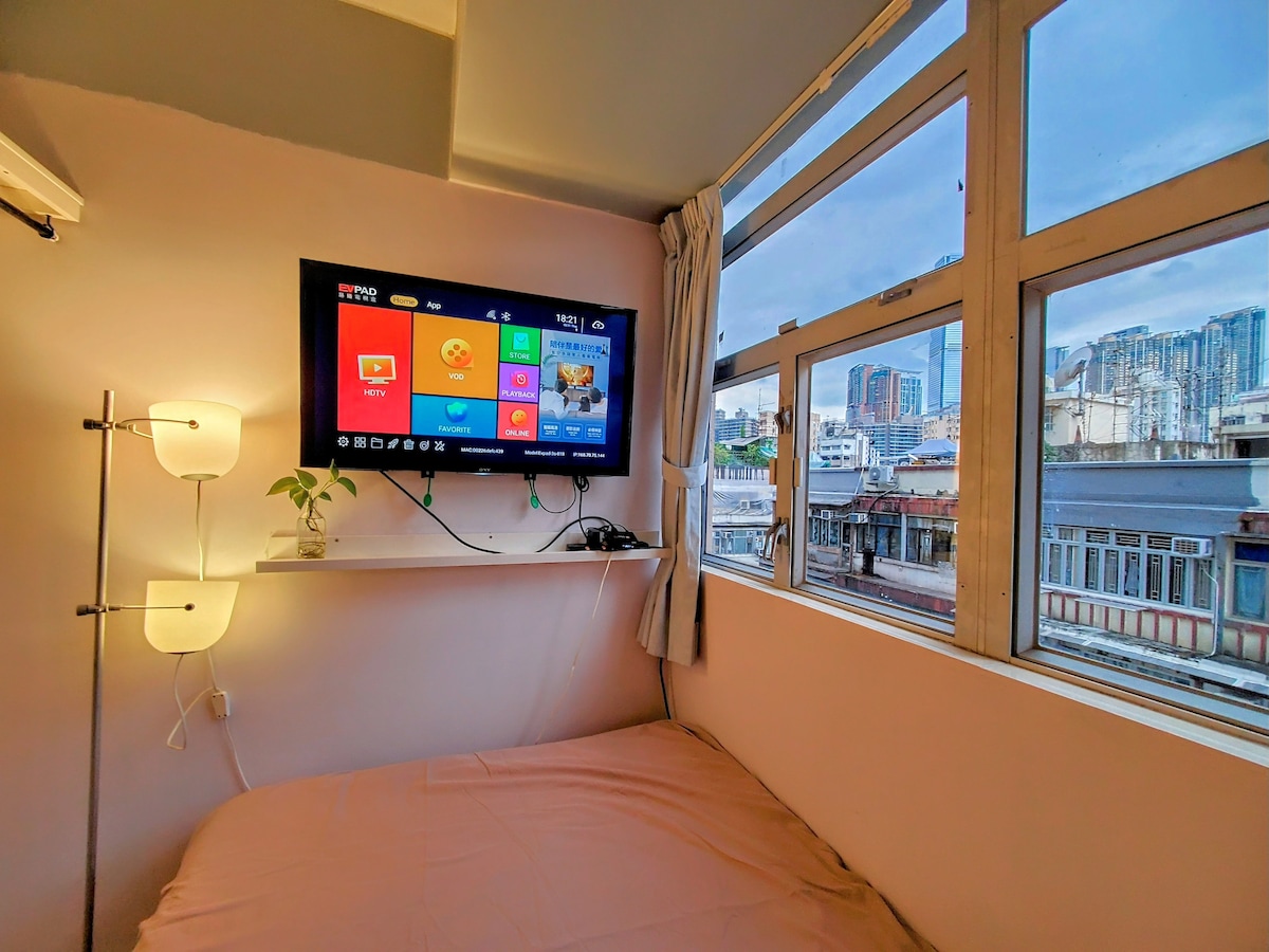#18ノスタルジックな部屋/5分でジョーダンMTR/寺院通りまで徒歩/ライセンスホステル-高速鉄道-ハーバーフロントシティ