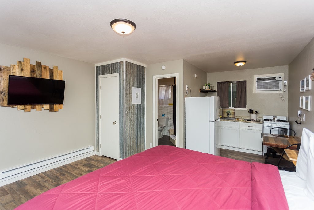 Make yourself at home with this cozy flat that's within walking distance of shopping, restaurants and Downtown Prescott. Enjoy a fright bedroom with 2 full beds in a room that sleeps 4. This unit is equipped with a modern kitchen, adjoining living space, and 1 Bedroom. Includes a small, fenced backyard and a walk-in shower. Free Internet and Direct TV. This is the perfect space when exploring Prescott's historic downtown, famous courthouse, Whiskey Row, and Sharlot Hall Museum.