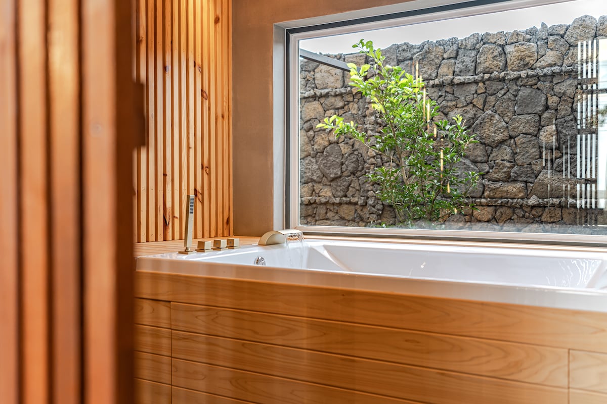 Sand&Milk - Sandは、こんな方におすすめです。 プライベートな貸切の宿泊施設を探しているカップル・家族・小規模な旅行 ジャグジーと暖炉を楽しみながら静かに休みたい人 感性的な空間とインテリアを大切にする人 同伴者との移動が快適な宿泊施設をお探しの方 🛋スペースガイド リビングルーム&キッチン/寝室2室 各寝室ごとの専用バスルーム →同伴者と一緒に快適に過ごせる構造です。 高い天井、古材の家具、海外の小物が調和した 温かくてエキゾチックな雰囲気の独自の宿泊施設です。 ホストが自ら建築し、細部まで心を込めて作りました。 ♨️ジャグジーと🔥焚き火 自然を眺めるジャグジーと 夕方の焚き火でゆっくりと一日を終えましょう。 ☕簡単なブランチとコーヒータイム 簡単なブランチを楽しめるように 朝食の材料と調理器具をご用意しました。 🎬プレミアムアメニティ 食器洗い機/洗濯機/乾燥機など お手持ちのみで快適にご滞在いただけます。 済州エウォル1298号として正式に営業を申告した登録宿泊施設です。