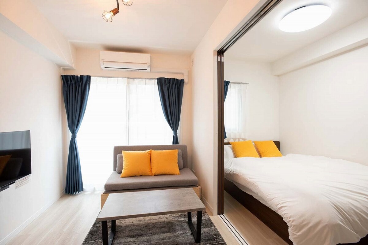伝統的な寝室。USJ & 道頓堀まで好アクセス!最大8名まで宿泊可能。NETFLIX