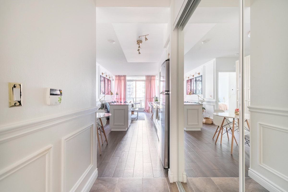 スタイリッシュなコンドミニアムでトロントのダウンタウンを体験しましょう!明るいキッチンで1日をスタートし、バルコニーでコーヒーをお楽しみください。街を探索した後は、Netflixでリラックスしましょう。 CNタワー、ロジャースセンター、リプリーズ水族館、エキシビジョンプレイス、レストラン、ウォーターフロントまで徒歩で行けます。 フルキッチン、キューリグ、仕事用デスク2台。建物にはプール、ホットタブ、サウナ、ジム、季節限定の屋上バーベキュー、無料駐車場、セルフチェックインがあります。 7泊以上の滞在と返金不可の予約に割引を適用。トロントでの思い出に残る休暇を今すぐご予約ください。