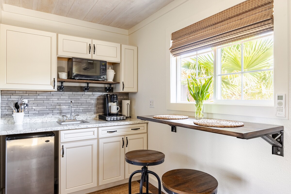 Enjoy this private guest suite with a dedicated entrance to yourself. Kitchenette is equipped with basics, including a microwave+, a one burner convection stove top, a full size refrigerator with ice maker, and a portable kitchen island on wheels with a butcher block. This mini-like apartment is located within a newly constructed neighborhood and is in close proximity to a private park/sports complex.