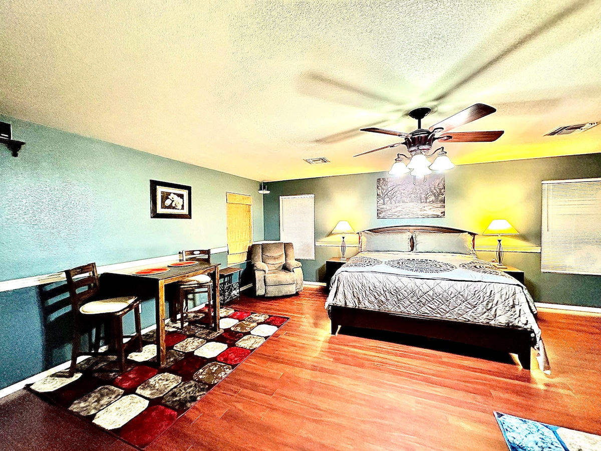 レビュー7件、5つ星中4.86つ星の平均評価大型マスタースイート、テレビ、プライベート、キングベッド、冷蔵庫、机