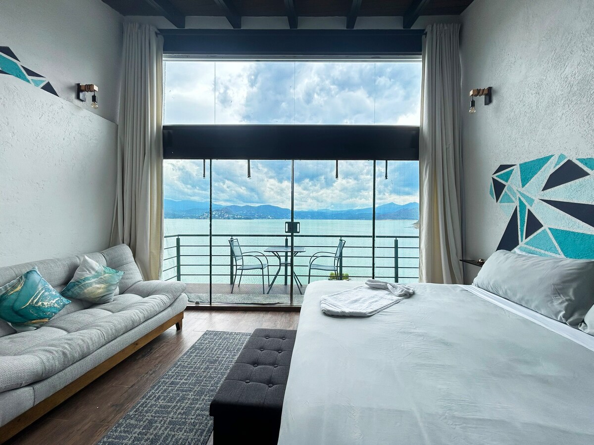 Disfruten de vistas panorámicas desde cada espacio: la terraza-comedor suspendida sobre el lago, la sala con ventanales, el comedor y la cocina integral. Este departamento de diseño contemporáneo para parejas incluye suite con cama King, sofá cama y detalles de lujo. Relájense en la alberca del edificio y experimenten amaneceres espectaculares y cenas bajo las estrellas. Un espacio donde el lago se convierte en el centro de cada momento inolvidable. Vive una experiencia única.
