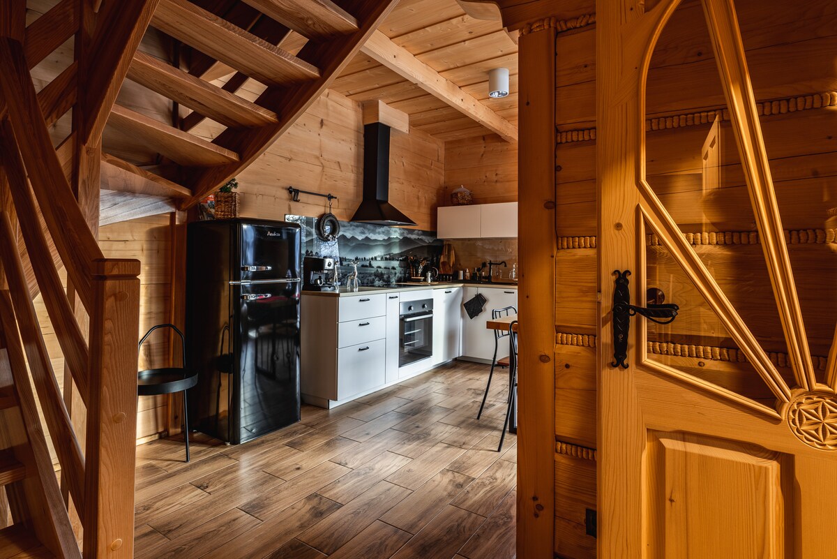 「Szałasu Kosówka」へようこそ。 5人用の山小屋。寝室が2つ(1つはバルコニー付き)、ダブルソファベッドのあるリビングルーム、設備の整ったキッチン、バスルーム、そして2階に追加のトイレがあります。 小屋は暖かく居心地の良い雰囲気を作り出します。子供連れの家族に最適です。 無料Wi-Fiと2台分の駐車スペースをご利用いただけます。