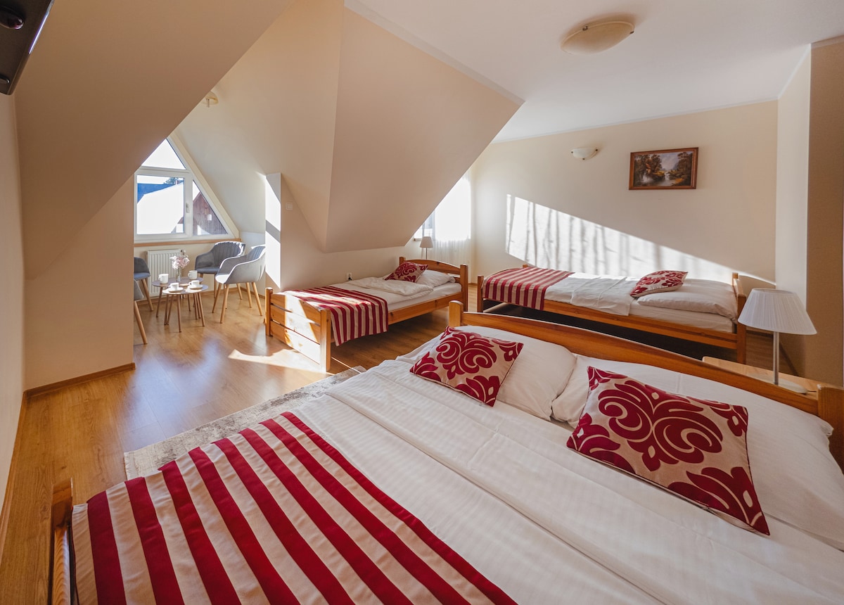 グランドシャレーは、ポドハレの中心部にある、タトラ山脈のパノラマビューを望む250平方メートルの豪華なヴィラです。ゲストは以下を利用できます。エアコン付きの寝室4部屋、バスルーム4部屋、景色の良いジャグジー、サウナ、ビリヤードとPS5を備えたゲームルーム、フィットネスエリア、光ファイバーを備えたオフィス、キッズコーナー、暖炉、そして一年中使えるバーベキューグリル。ヴィラは10名様までの快適な宿泊施設を提供しています。家族の休暇、友人との出会い、またはワーケーションに最適な場所です。快適さ、モダンさ、ユニークな雰囲気が一つになっています。