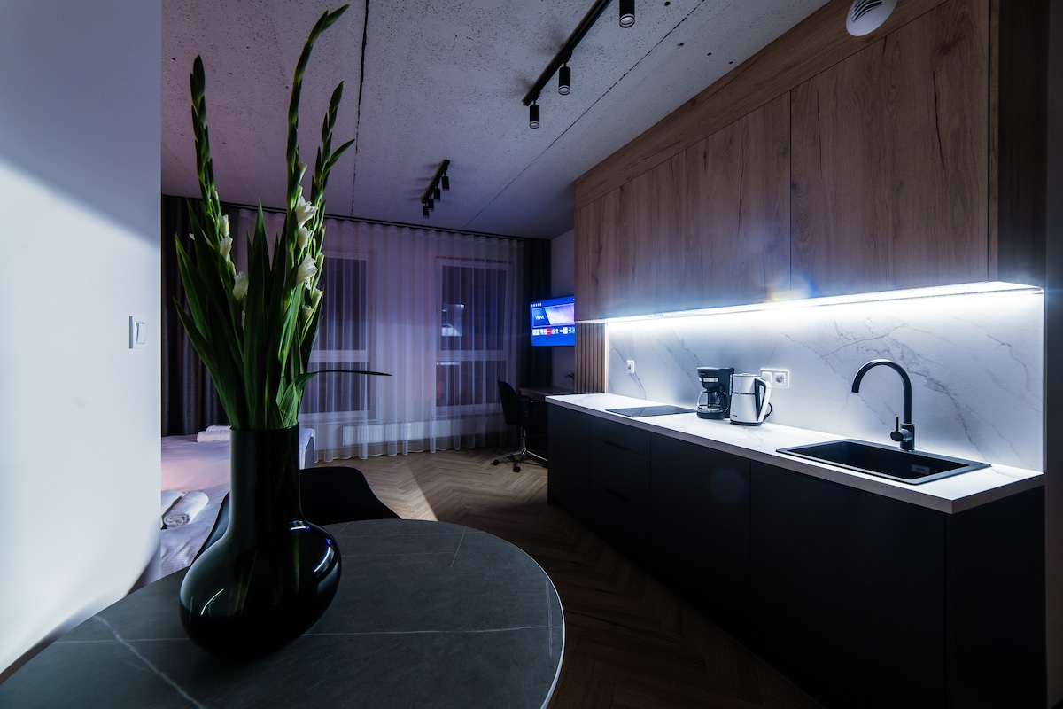 Witaj w naszym nowym, luksusowym apartamentowym hotelu. Każdy z naszych apartamentów został zaprojektowany z myślą o Twoim komforcie. Posiadamy różne rodzaje apartamentów, aby spełnić potrzeby każdego gościa - od przytulnych jednopokojowych mieszkań po przestronne apartamenty rodzinne. W pełni wyposażone kuchnie, szybki internet Wi-Fi, klimatyzacja i ogrzewanie. Bezpłatny prywatny parking. Zapraszamy do rezerwacji i życzymy niezapomnianego pobytu!