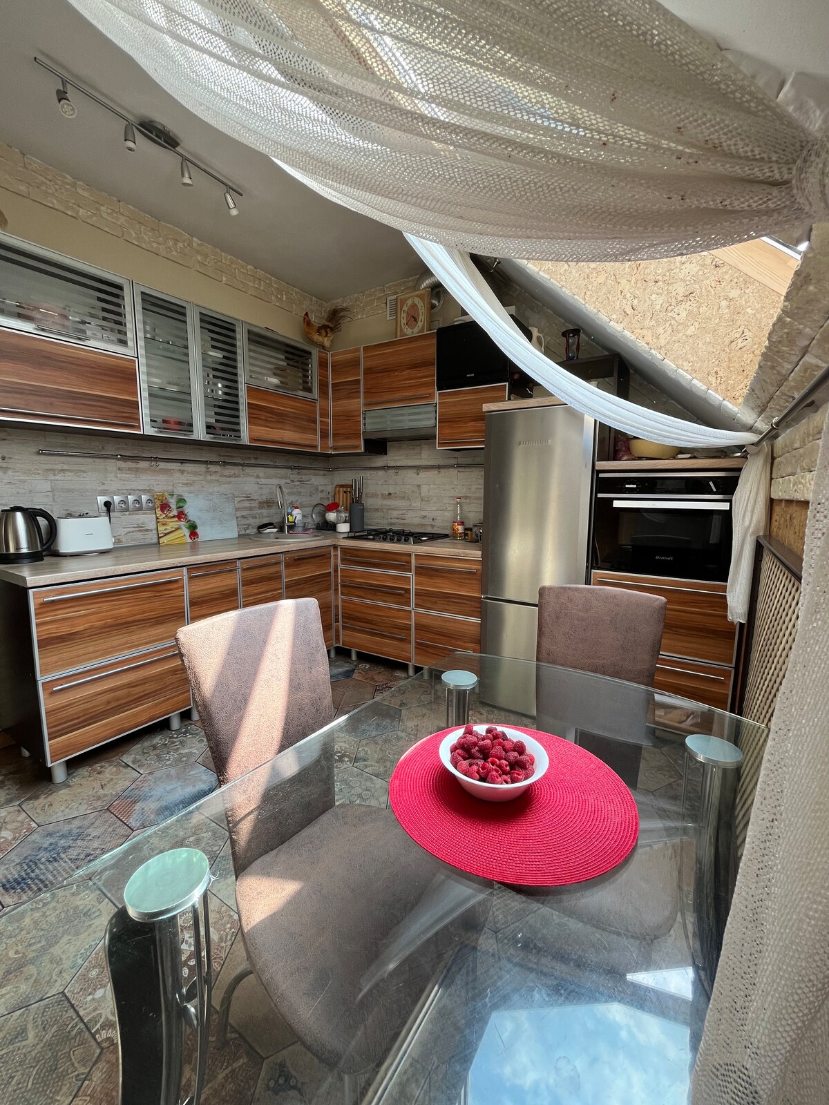 デュプレックスアパート、2つの独立した寝室、リビングルーム、キッチンとトイレ。 中心部や公園まで徒歩10 ~ 15分です。 バス停、市場、スーパーマーケットに近いです。 1階の寝室には引き出し式のダブルベッドがあります。 2階には大きなダブルベッドの表彰台と独立したシングルベッドがあります。 明るいリビングルームには、レジャー用のスマートテレビ、快適なソファとアームチェアが備わっています。高速インターネット。 キッチンには、調理に必要なすべてのものが揃っています。 お湯、洗濯機、ヘアドライヤーは常にあります。 車は庭に置いておくことができます。