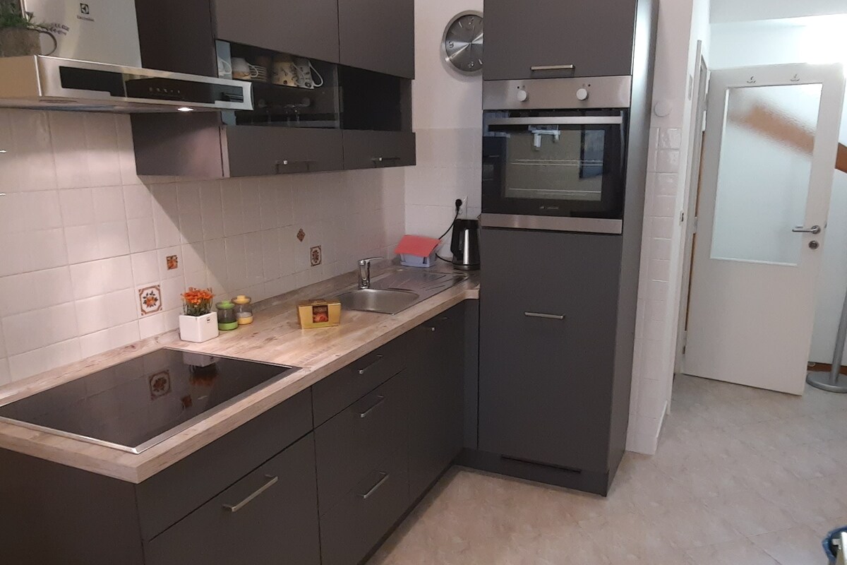 The apartment is spacious and the specialty is a large private terrace (30 m2) in front of the apartment surrounded by greenery. You can enjoy the natural shade or the shade under the umbrella. Also you can park the car on the street for free or can park in my yard, so you can enjoy their vacation without worrying about your car. The area is ideal for swimming (7 minutes to the beach) , walking, biking, climbing and marine activities,or enjoy in a short walk to the old town along the seafront.