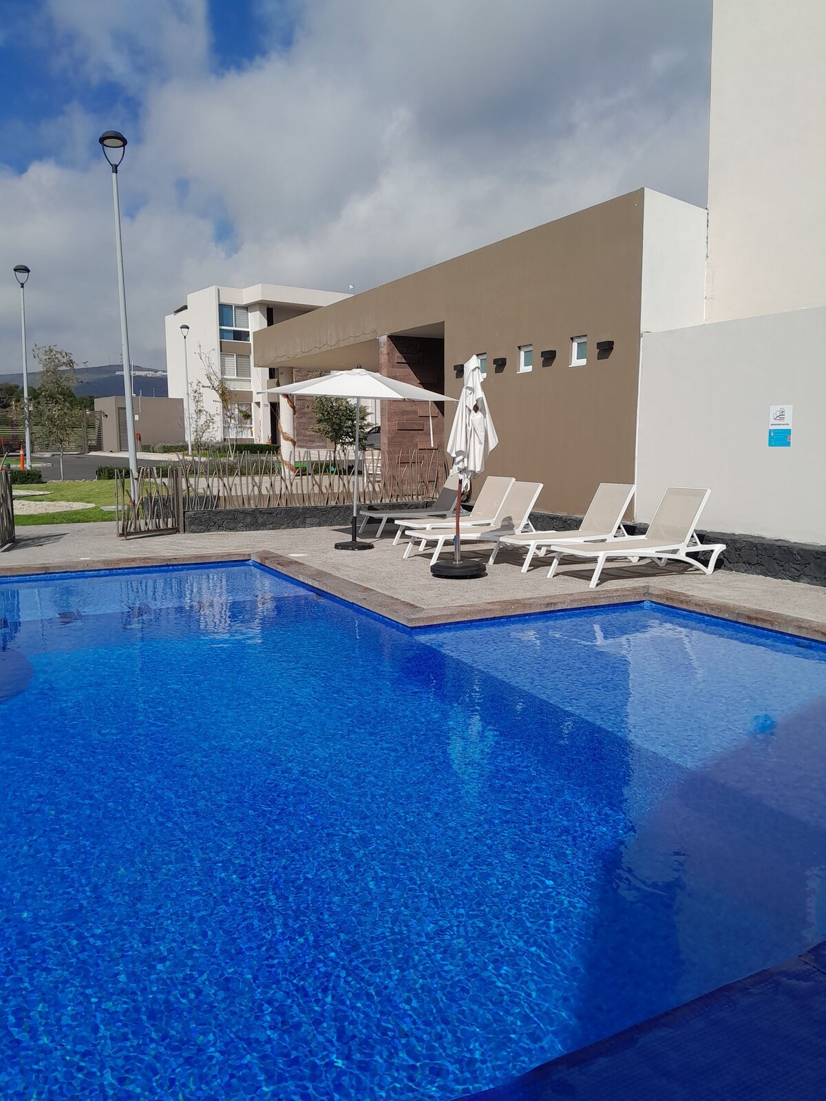 Disfruta de este bonito departamento para 4 personas en un condominio con alberca, gimnasio, cancha de pádel, pista de jogging, área de juegos para niños y estacionamiento privado para 2 vehículos. Ideal para escaparte de fin de semana o para estancias medianas donde hacer Home Office. Wi-Fi, Netflix, agua purificada y lavadora/secadora incluídos. No te faltará nada durante tu estancia.