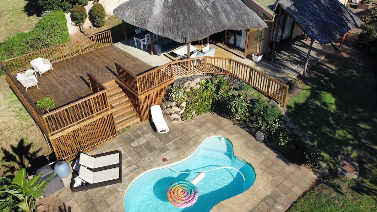 Our beautiful home is close to the beach, spacious living and large entertainment area with great views. Home away from home . A place to seriously relax and (URL HIDDEN) place is good for couples and families (with kids). The swimming pool can be netted if needed and there is wheelchair access to all areas of the house. There is a solar powered inverter and back up water tanks on the property so load shedding is not a problem.