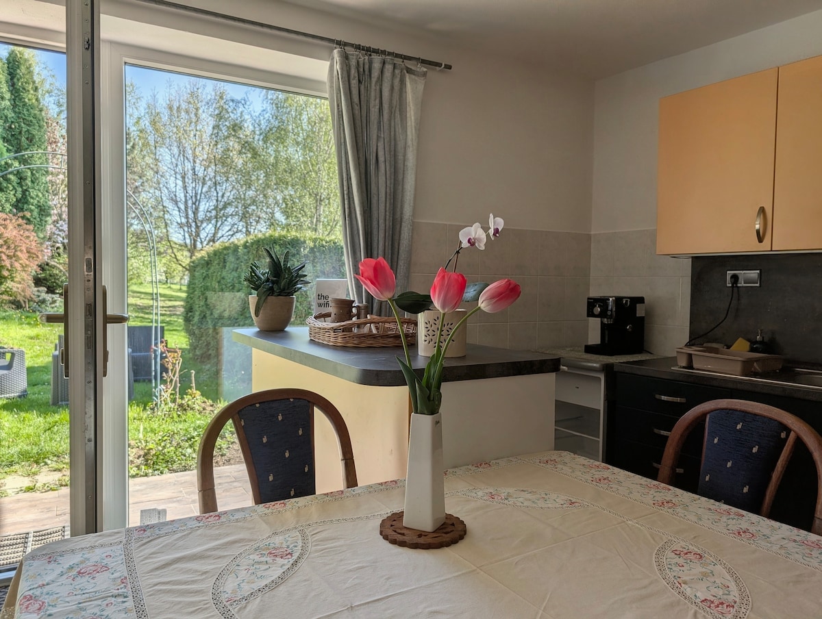 鳥のさえずりに囲まれてイバラの果樹園の真ん中で、ヴィゾヴィツェの丘の景色を眺めながら目覚めることは、都会の生活から頭を解放するための完璧な癒しです。東側の大きな窓からはヴィゾヴィツェの丘が見え、北側の大きな窓からはスグリの果樹園が見えます。ソファでゆっくりとリラックスしながら、おいしいものを味わってください。夕方のグリルの時間には、西の夕日が家の前のテラスを照らし、多くのグルメが料理の腕前を発揮します。