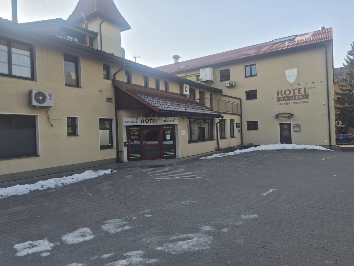 Hotel Na Jižní je umístěn v klidné části města - kousek od dálnice, v blízkosti obchodní centrum, potraviny, lékárna. V hotelu je pivnice a možnost snídaně.