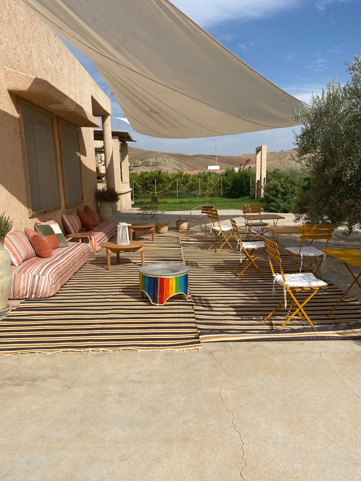 フェズ市から15キロ、アイン・カンサラ地域に位置するこの素晴らしいエコロッジは、最大8名様まで宿泊可能で、自然と再びつながり、リラックスすることができます。 オレンジやオリーブの木々が生い茂るオーガニック農園の真ん中にあるこのロッジからは、この地域の美しい山々の景色を眺めることができます。 100%自然の中でのアクティビティや、フェズの魅惑的なメディナの訪問をお手配いたします。
