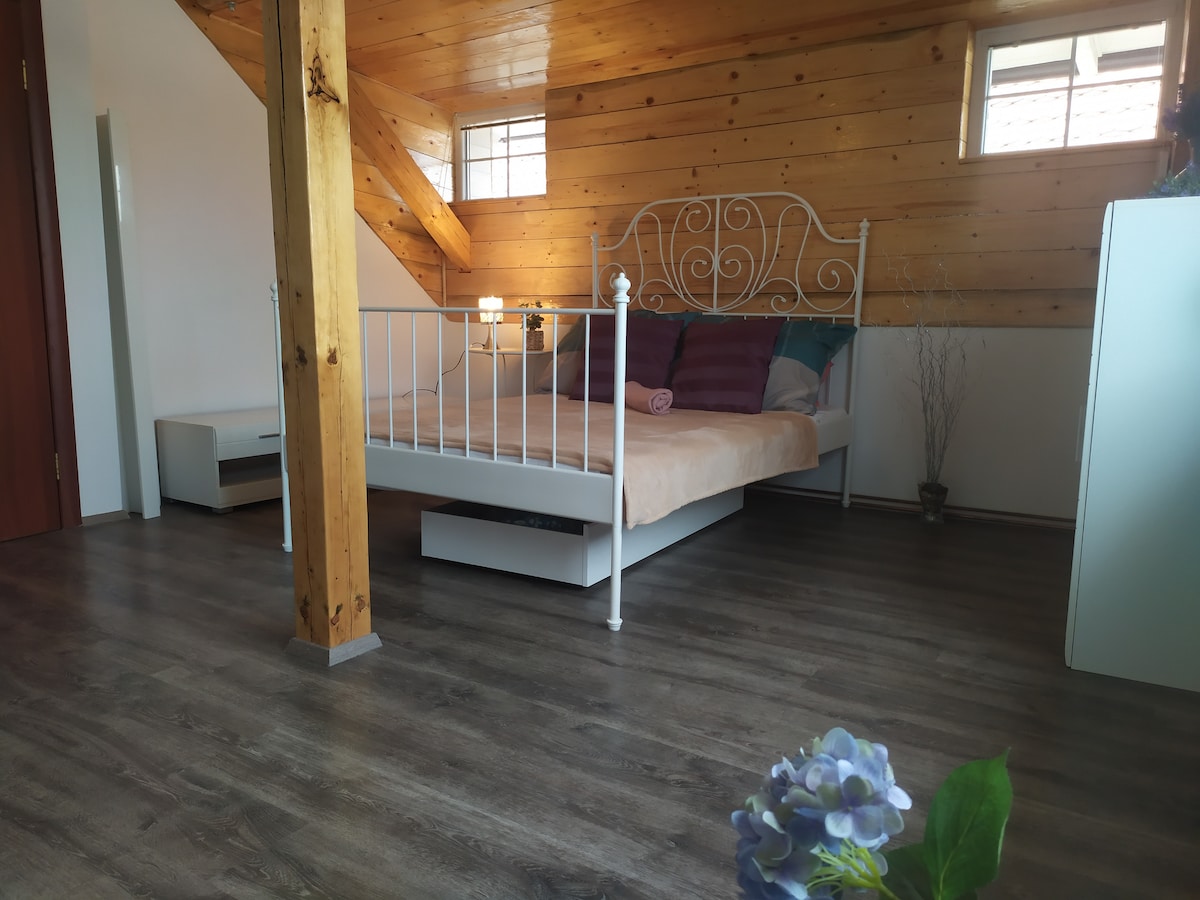 このユニークな宿泊施設には独特のスタイルがあります。真新しく、屋根裏にあり、居心地が良く、木製の梁と羽目板、デザインキッチンとアクセサリーが備わっています。立地は素晴らしく、中心部までわずか5分、人気の観光スポットであるドブルジシュ城まで8分、池まで1分、最寄りの森まで約15分です。カップル、家族、友人、サイクリストに最適です(自転車を保管することができます)。 3つの固定ベッド(クイーンサイズのダブルベッド1台、シングルベッド1台)。各ゲストにウェルカムドリンクをご用意しています。