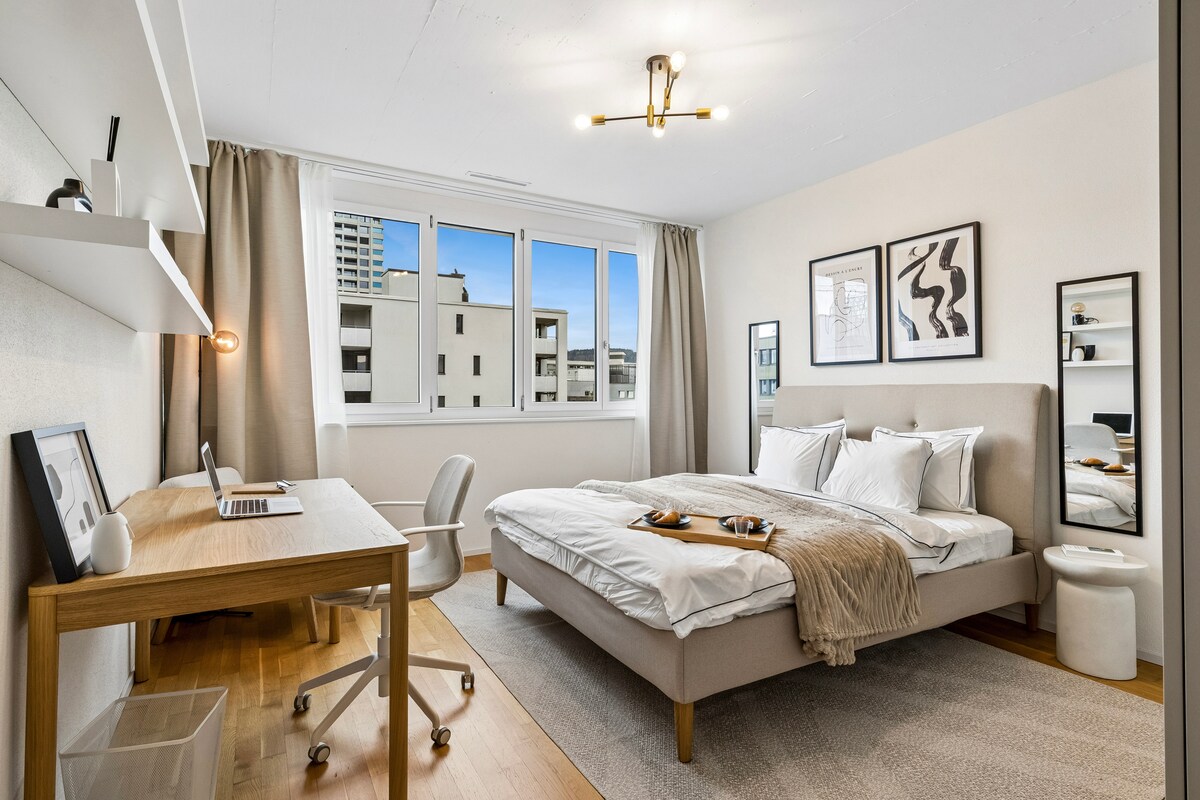 快適で光がたっぷり入るアパートで、温かみのあるディテールと必要なものがすべて揃っています。フルキッチン、コーヒーマシン、食器洗い機、洗濯機・乾燥機が備わっています。 ご自宅にいるかのようにおくつろぎいただき、ホテルの特典をお楽しみください。25時間ホテルのカフェ、レストラン、コワーキングをご利用いただけます。 静かなエリアで、川まで300m、お店がすぐ近くにあります。 チューリッヒ中央駅までわずか1駅、市内中心部まで10分です。